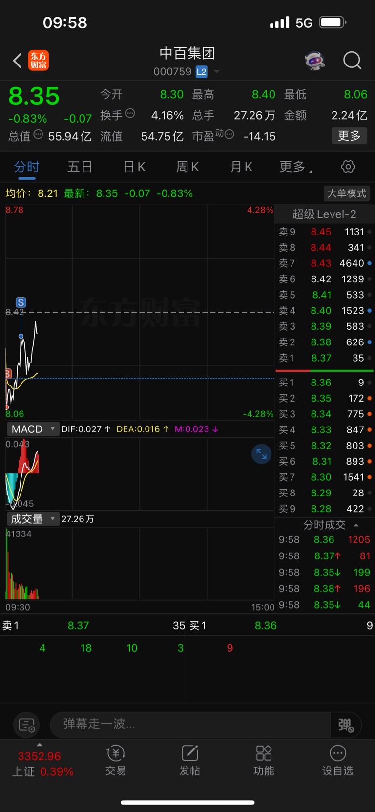 $中百集团(SZ000759)$ 太弱了,昨天追高买的,龙头国芳涨停了这还能绿