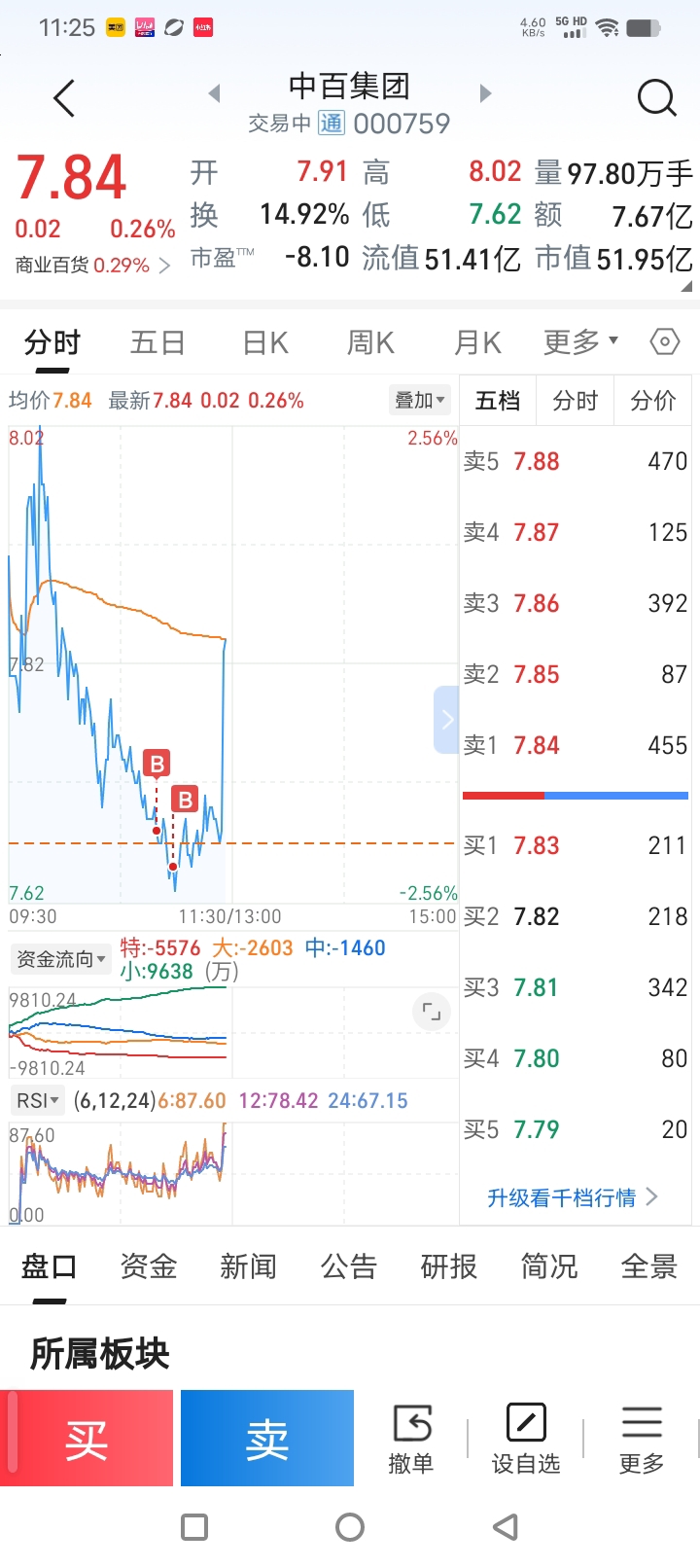 $中百集团(SZ000759)$ 昨天卖了,说不接不接坚决不接结果又手痒!明天能有三个点我就跑。