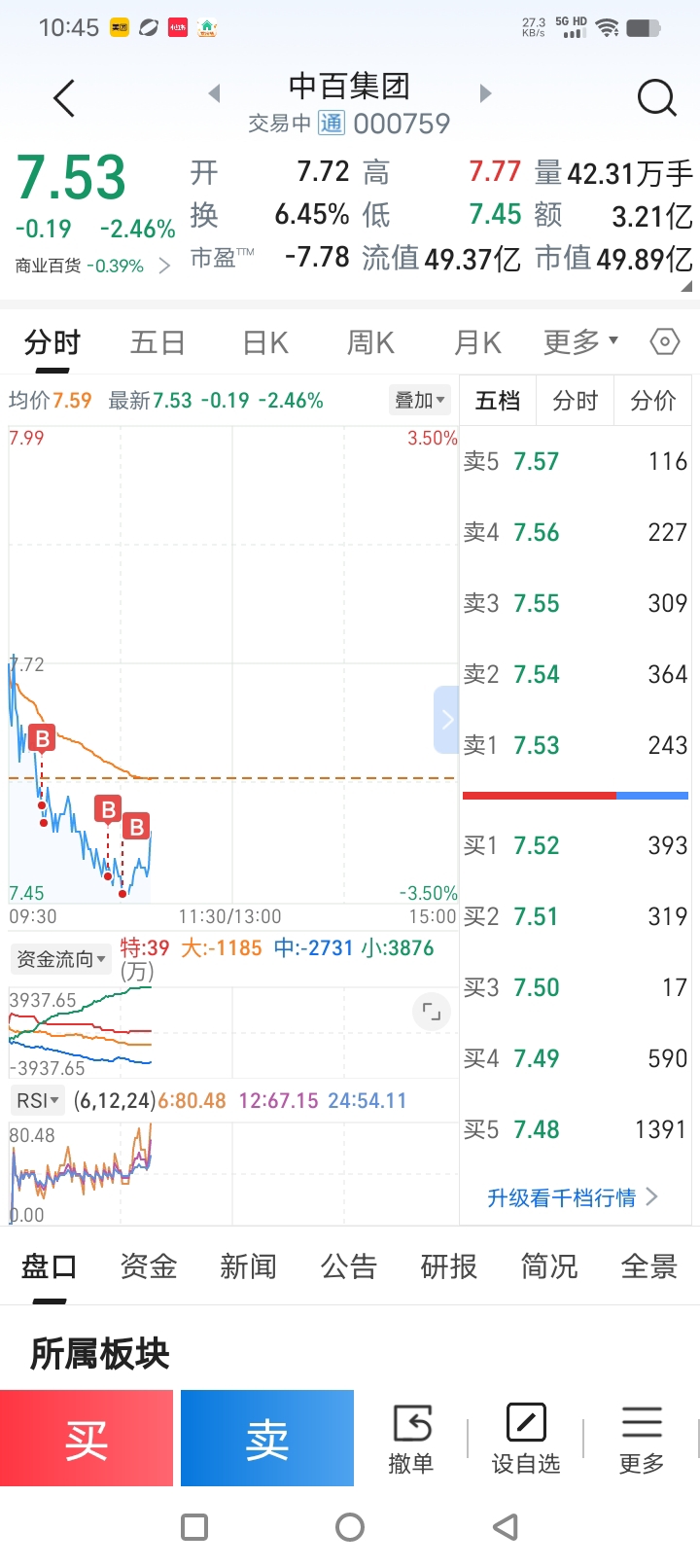 $中百集团(SZ000759)$ 不怕继续加仓,在往下在加!
