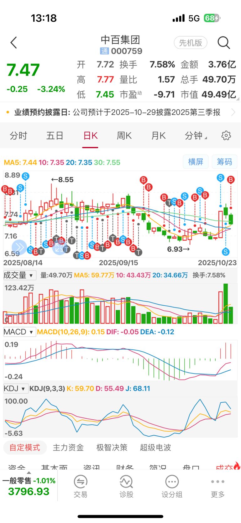 $中百集团(SZ000759)$ 干就完了,昨天开盘清仓,现在7.47买回!#强势机会# #投资干货# #投资随笔# #炒股日记#