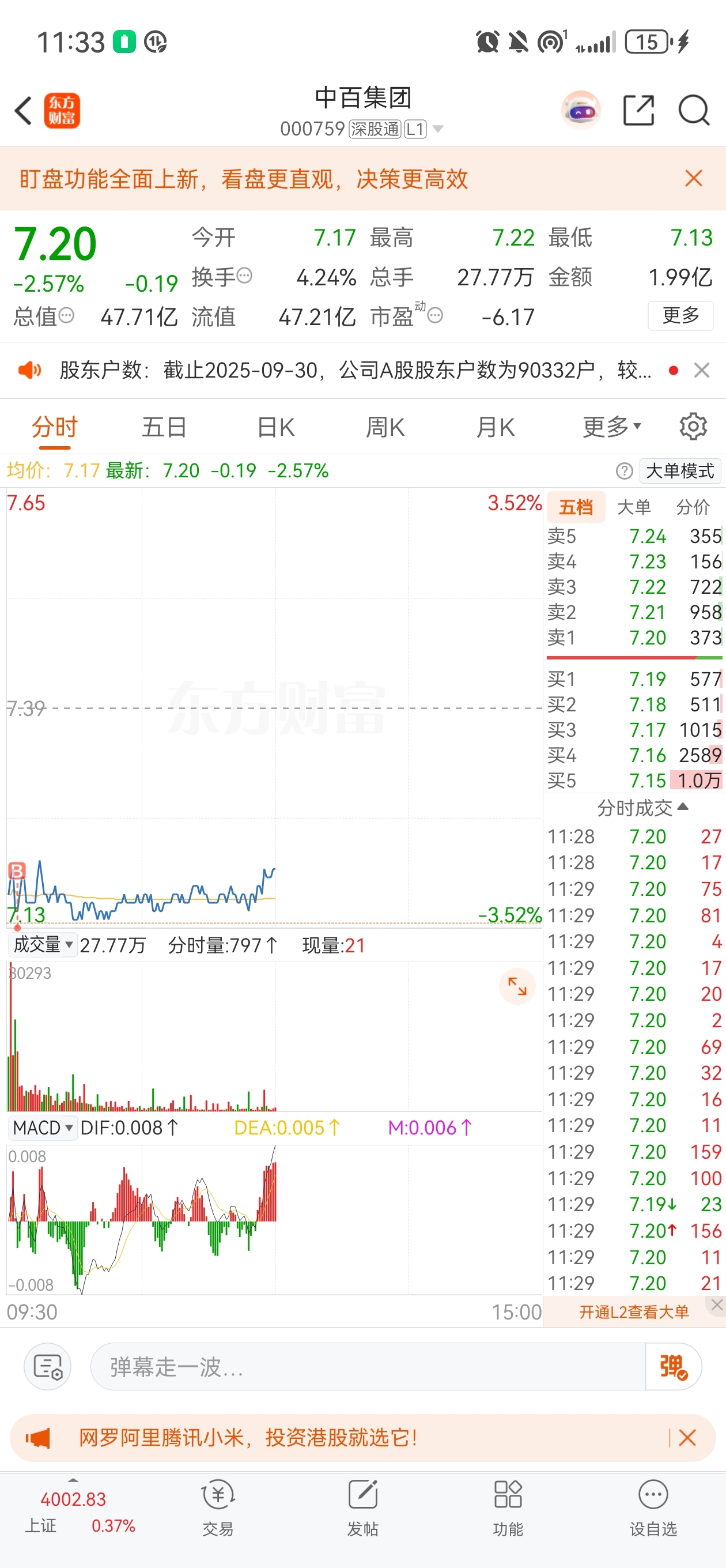 $中百集团(SZ000759)$ 7.13精准半仓抄底,拿一周