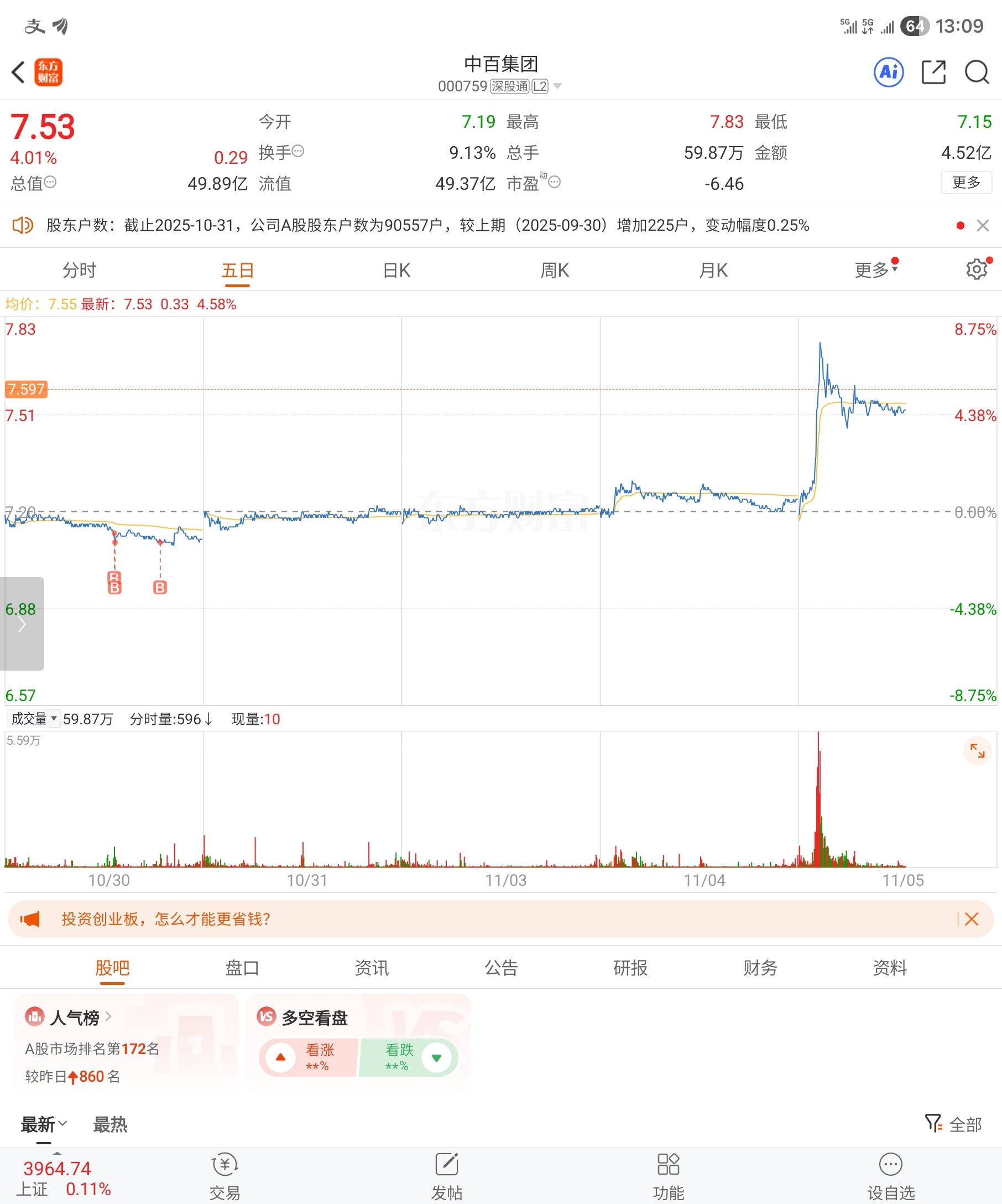 $中百集团(SZ000759)$ 这只股没格局.只在7.2以内补.