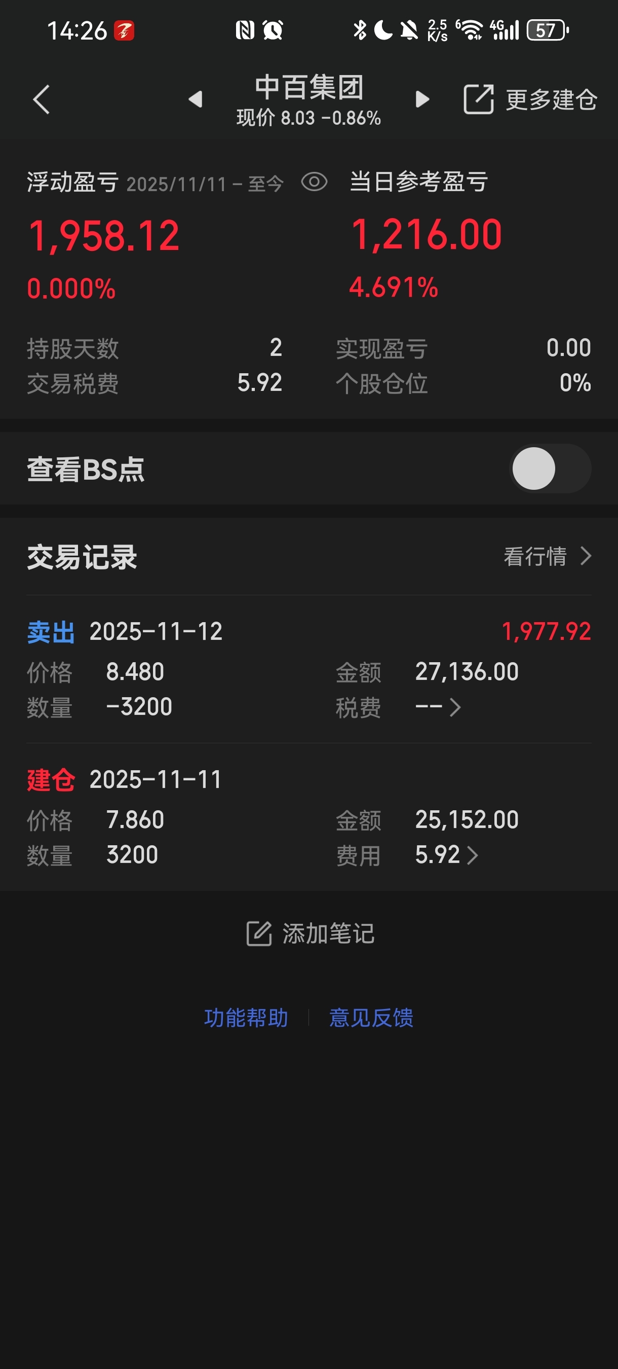 $中百集团(SZ000759)$ 8.48卖出是啥水平
