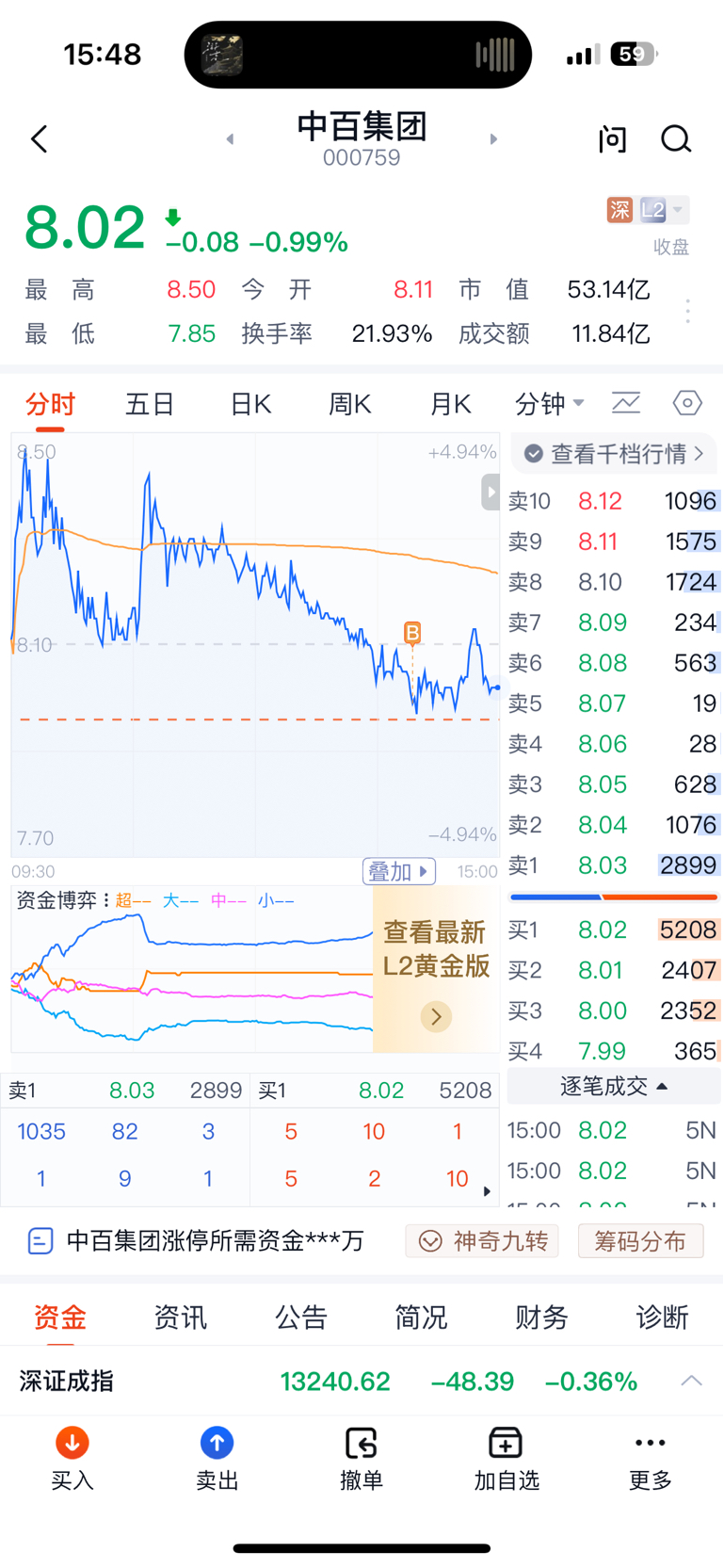 中百,个人理解是洗盘震仓。核心信号是“板块较强势+温和放量+回落不碰低点”既没破前高避免套牢盘出逃,又没砸穿日内低点,放量是筹码交换(散户洗出、主力接筹)的表现。