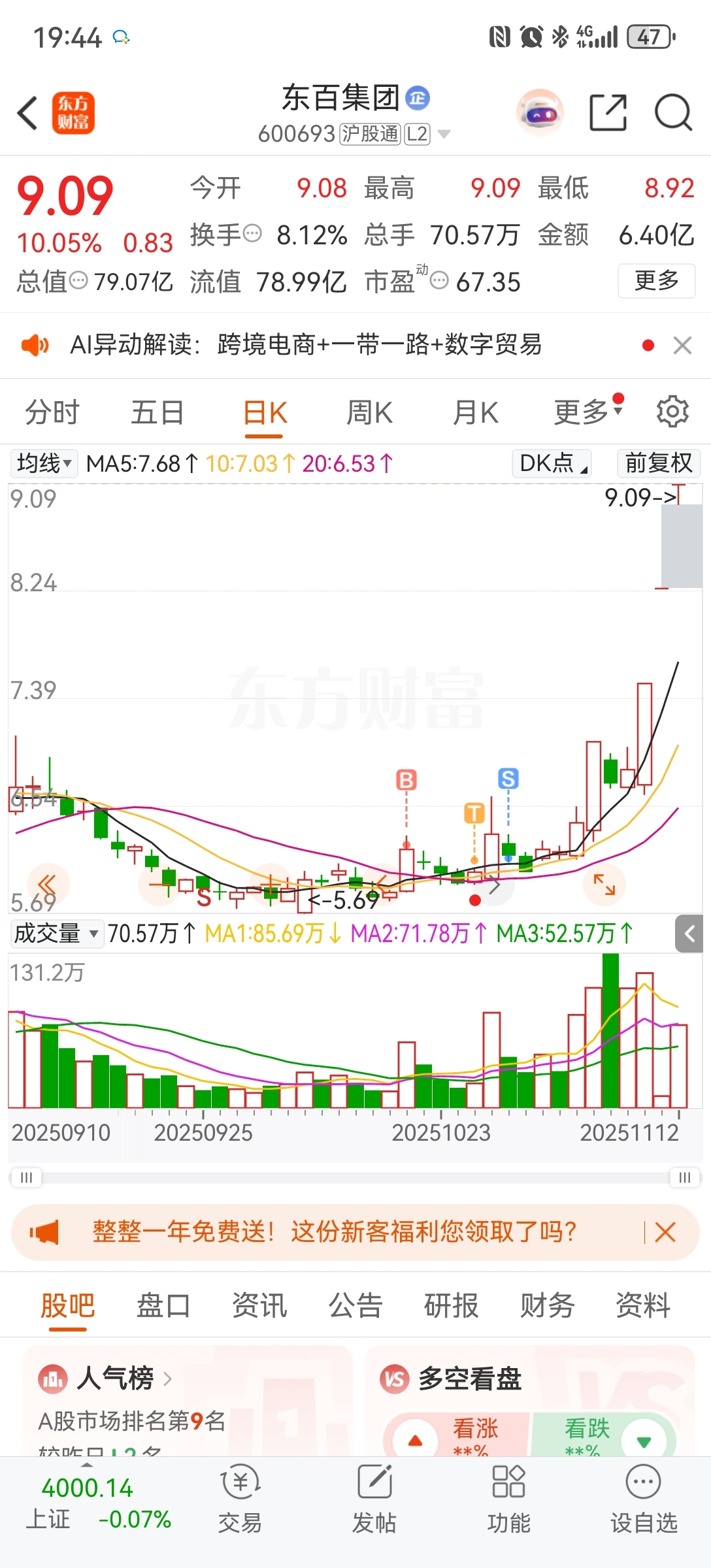 $中百集团(SZ000759)$ 卖了东百买的你呀