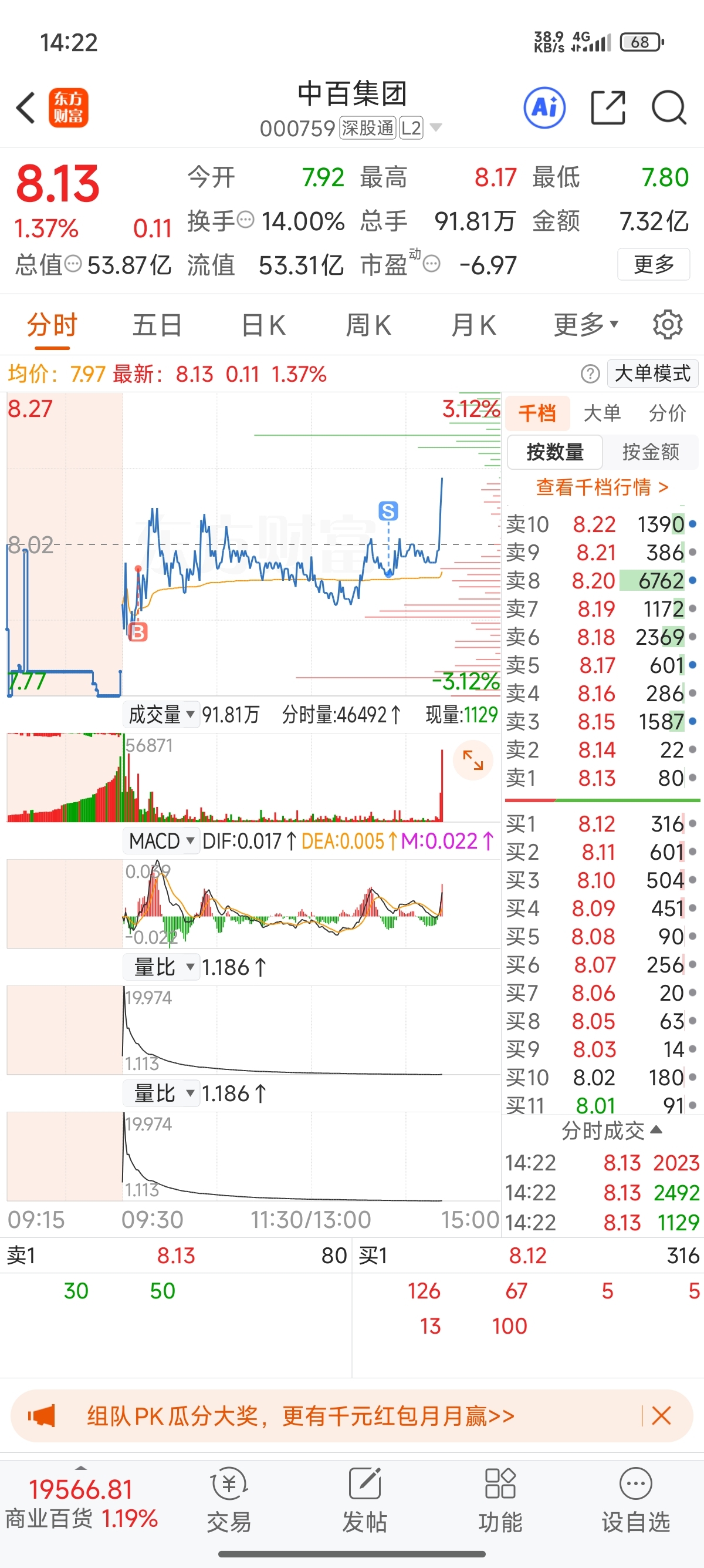 $中百集团(SZ000759)$ T了个寂寞,快下来。我还要买