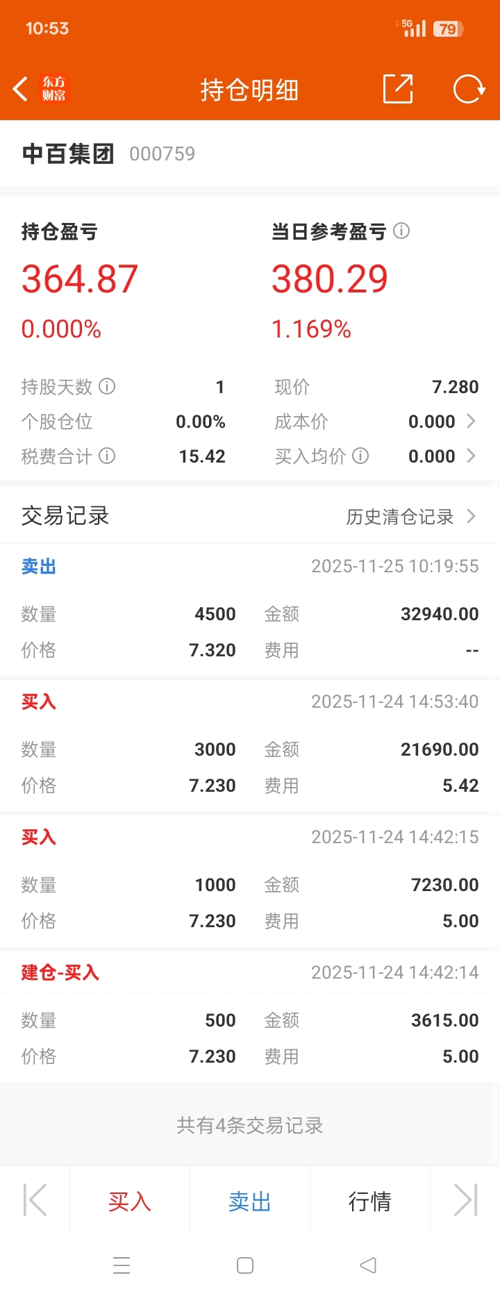 $中百集团(SZ000759)$ 7.23的本,今早看了一上午不拉直接卖了,下午直接跌到7.17