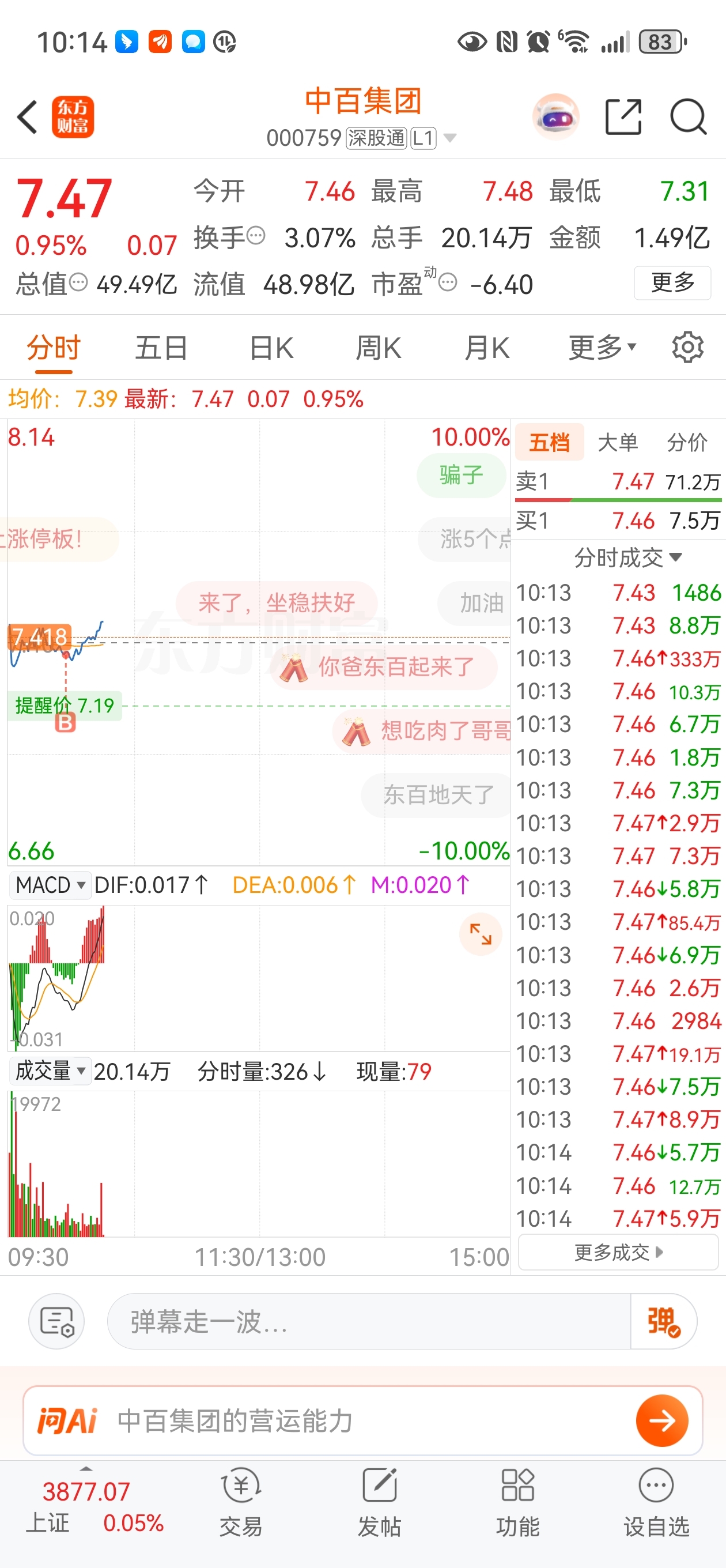 $中百集团(SZ000759)$ 来来来排队排到你涨