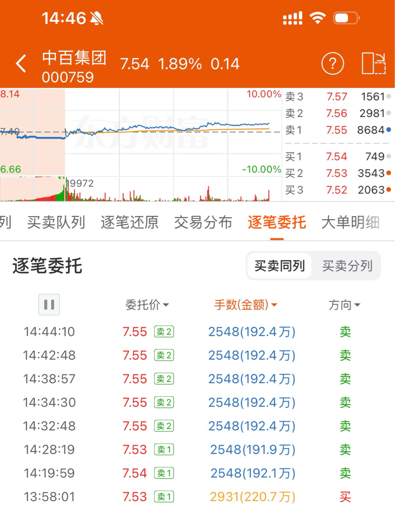$中百集团(SZ000759)$ 这7个2548手单子是啥意思
