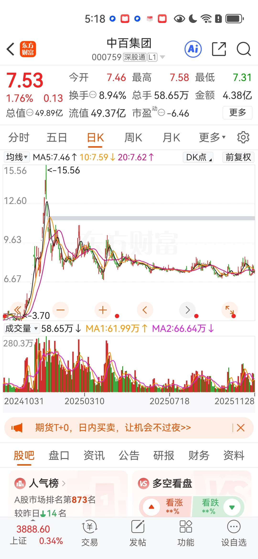$中百集团(SZ000759)$ 横盘一年了!拿着吧!总归熬出头的!