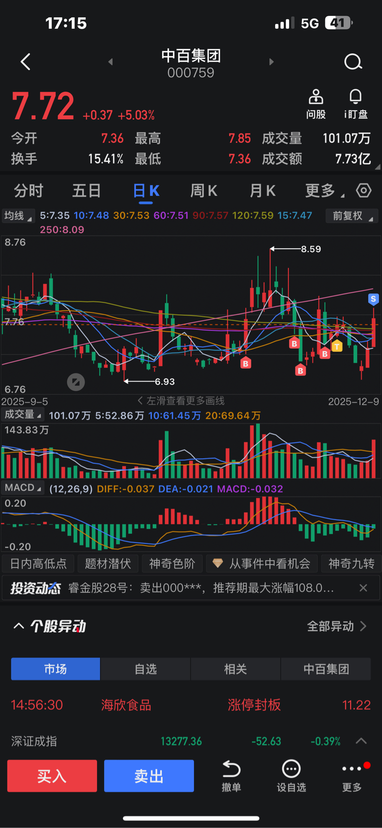 $中百集团(SZ000759)$ 我是真的尾盘清仓了,明天一字就麻烦了,哎。