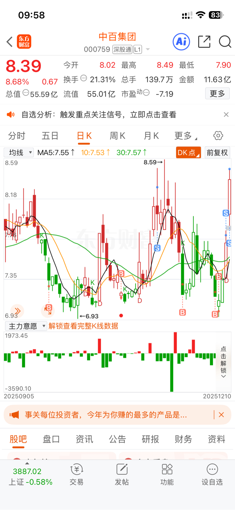 $中百集团(SZ000759)$ 日常做T,落袋为安