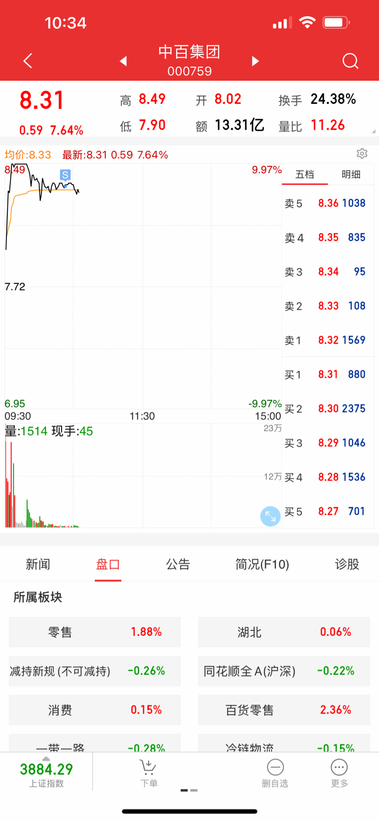 $中百集团(SZ000759)$ 718的本 走了 我没格局
