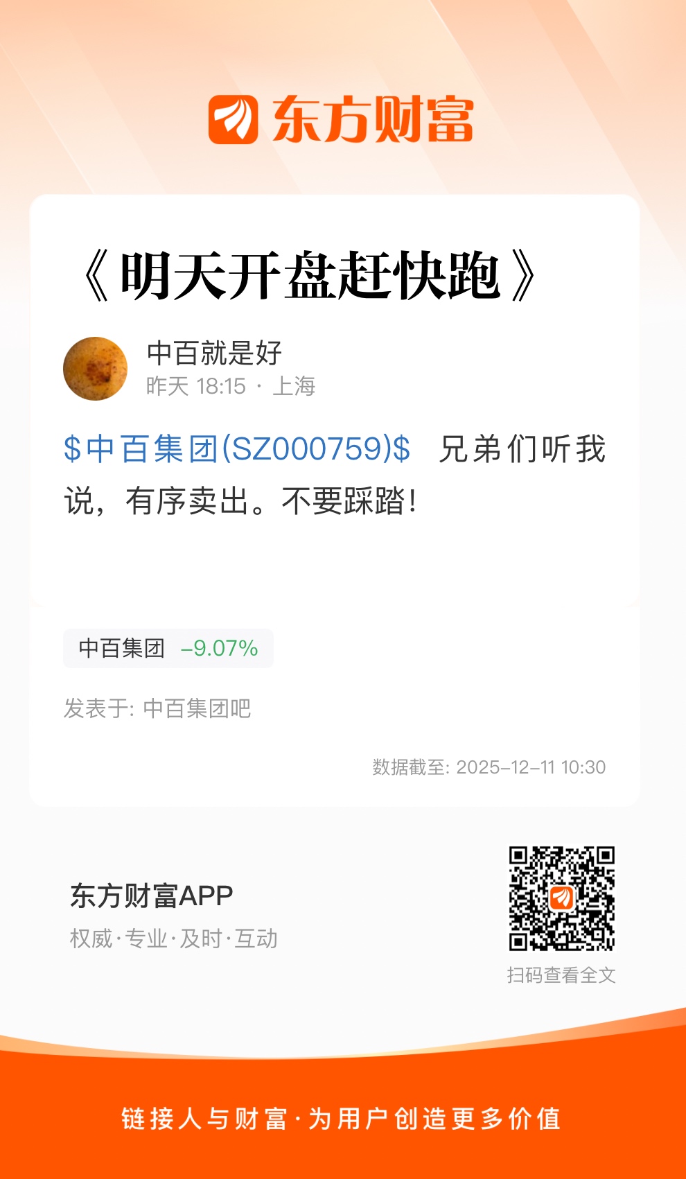 $中百集团(SZ000759)$  兄弟们听我说,有序卖出。不要踩踏!