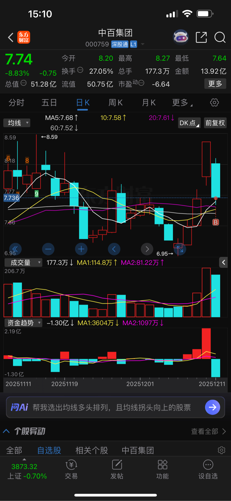 $中百集团(SZ000759)$ 均线刚刚粘合向上,又有成交量,不涨没天理啊