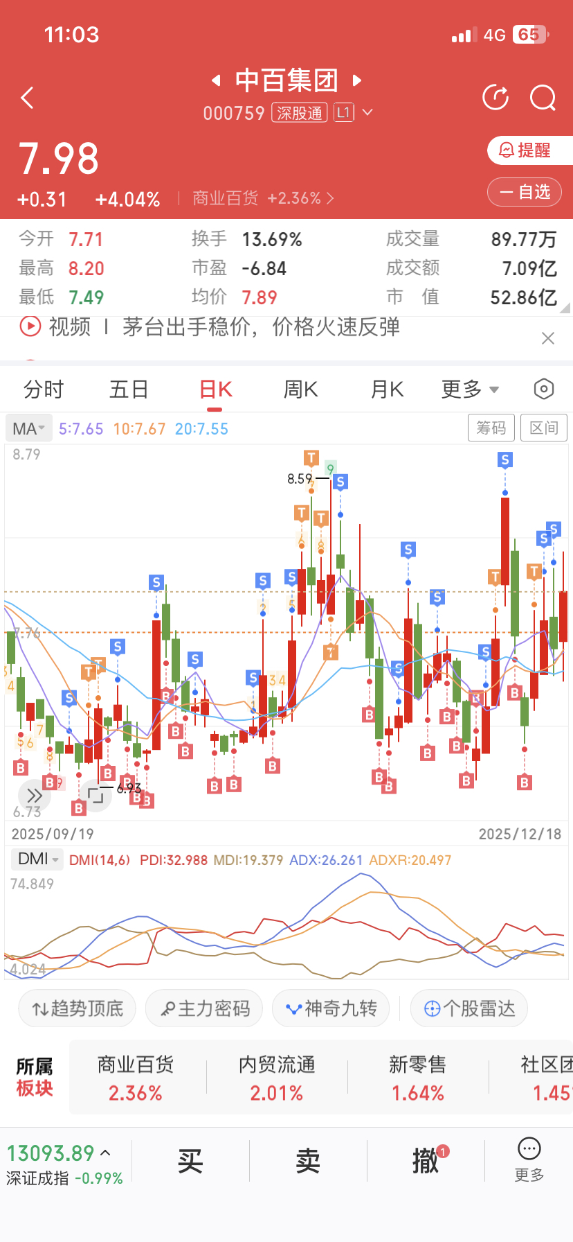 $中百集团(SZ000759)$ 这个量化太狠了T去T来赚不到几个子,第2天准能砸到你的成本价下方