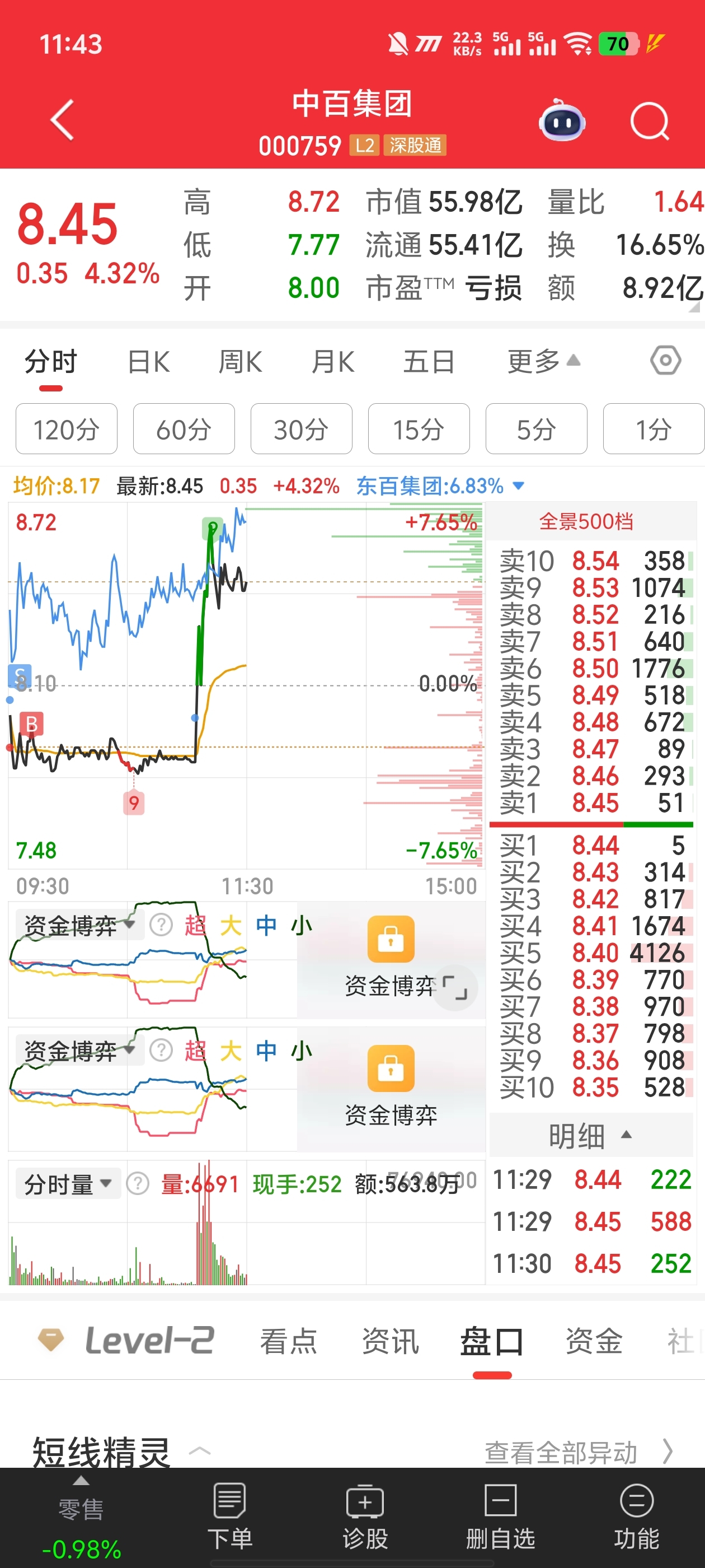 $中百集团(SZ000759)$ 气死我了7.98卖了拉红8个点