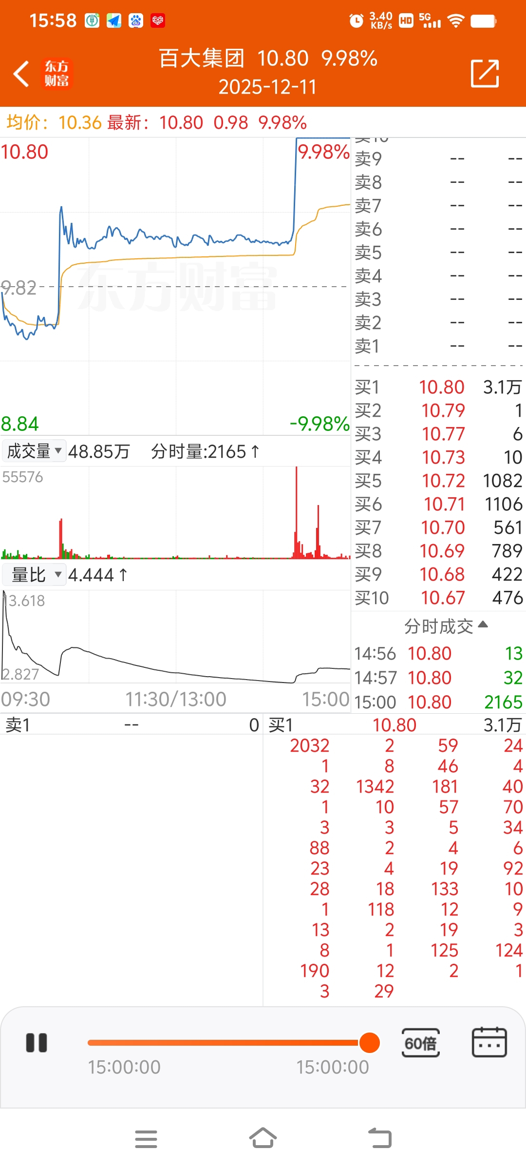 百大12.11号第一个涨停,最后收盘封单也是2000万元,我查了一下这些带“百”字的连续涨停的每次收盘都是四五千万元的封单。