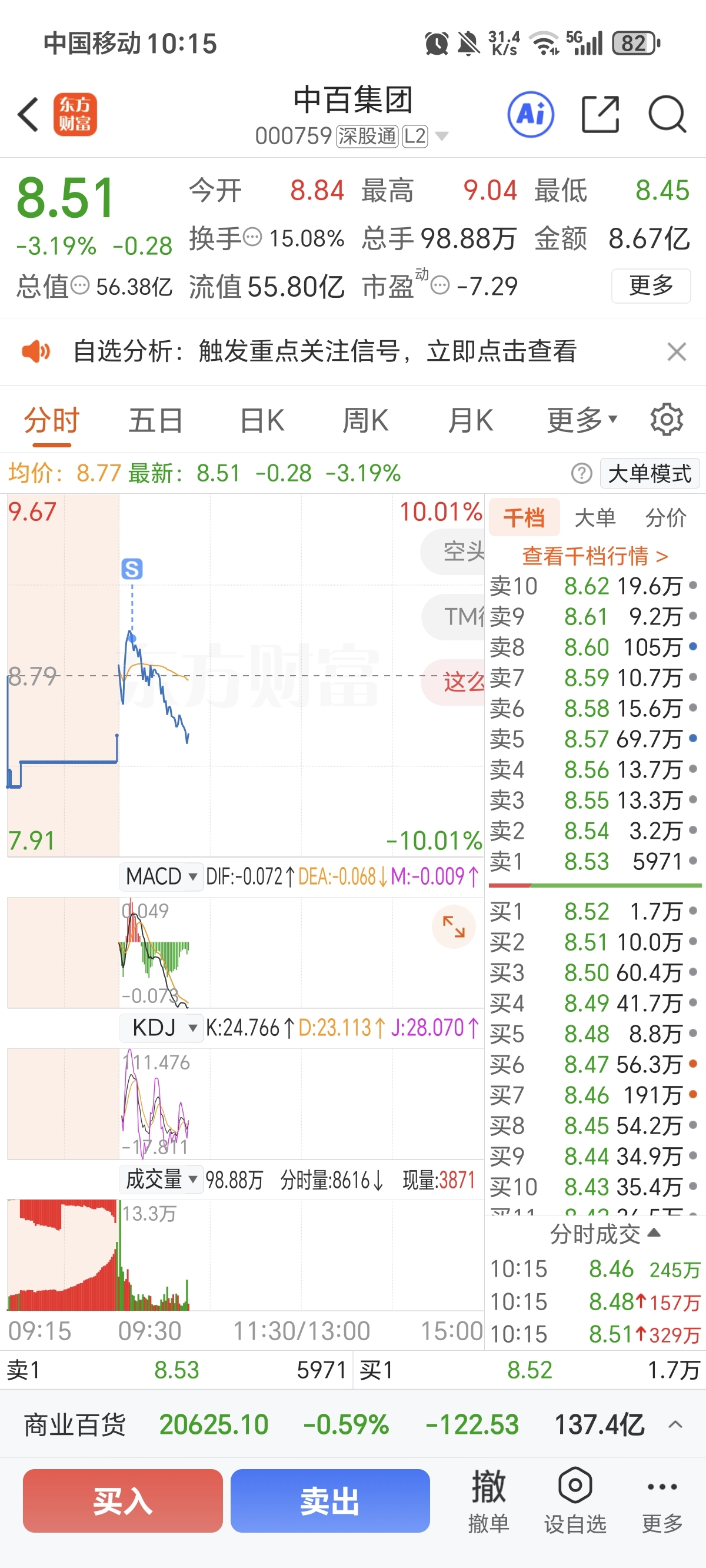 $中百集团(SZ000759)$ 对不住了,我砸的