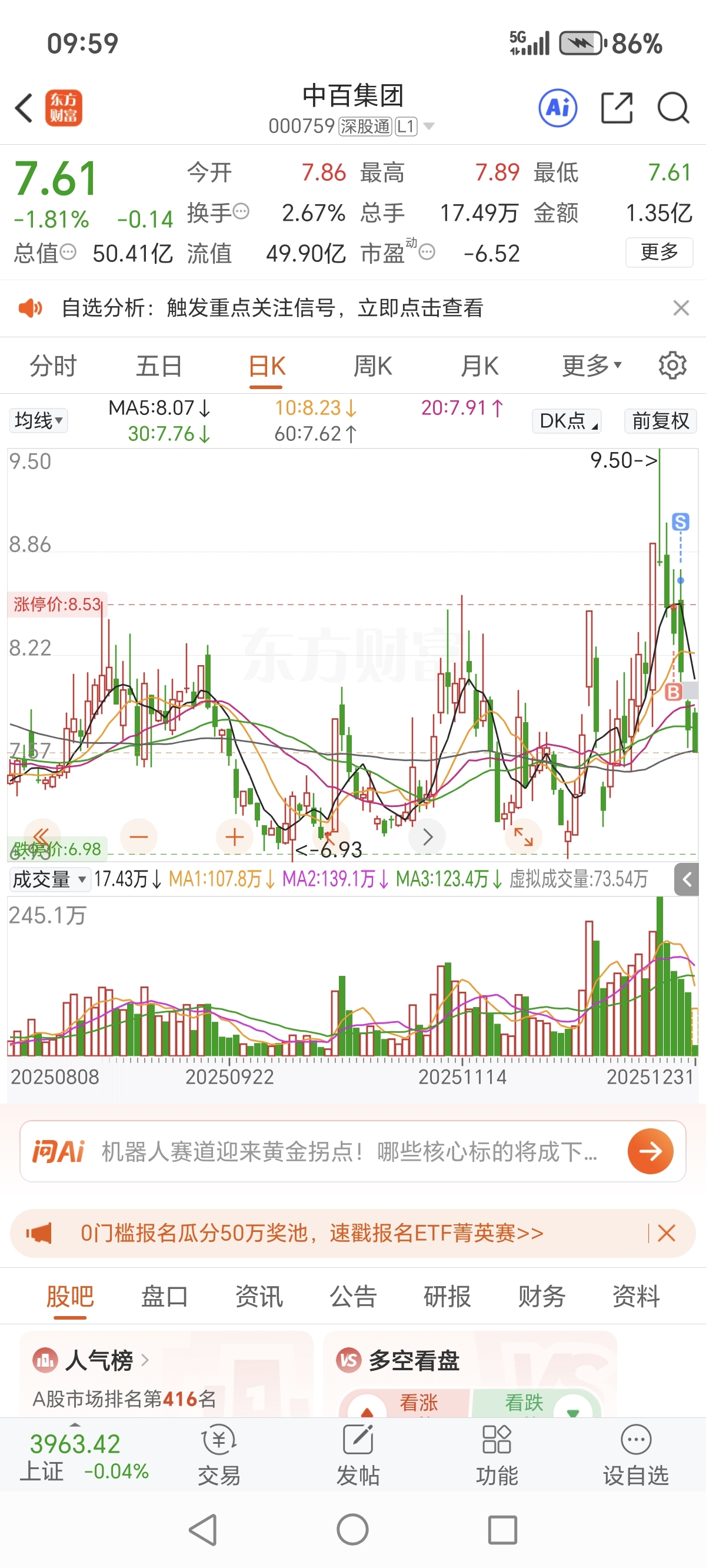 $中百集团(SZ000759)$ 跑不快都要留这里过年