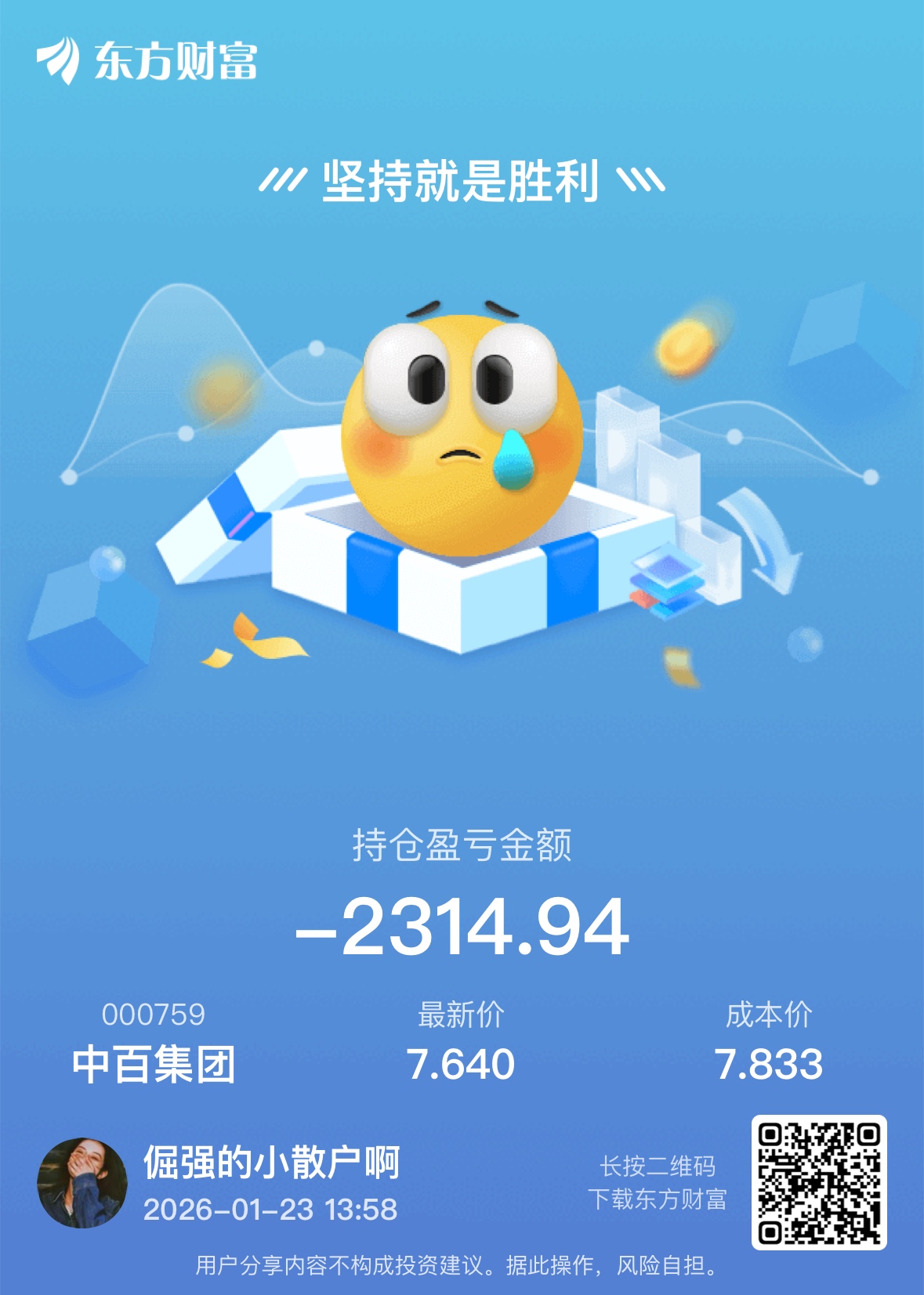 温馨提示: 1.根据《证券法》规定,禁止编造、传播虚假信息或者误导性信息,扰乱证券市场;2.用户在本社区发表的所有资料、言论等仅代表个人观点,与本网站立场无关,不对您构成任何投资建议。用户应基于自己的独立判断,自行决定证券投资并承担相应风险。《东方财富社区管理规定》