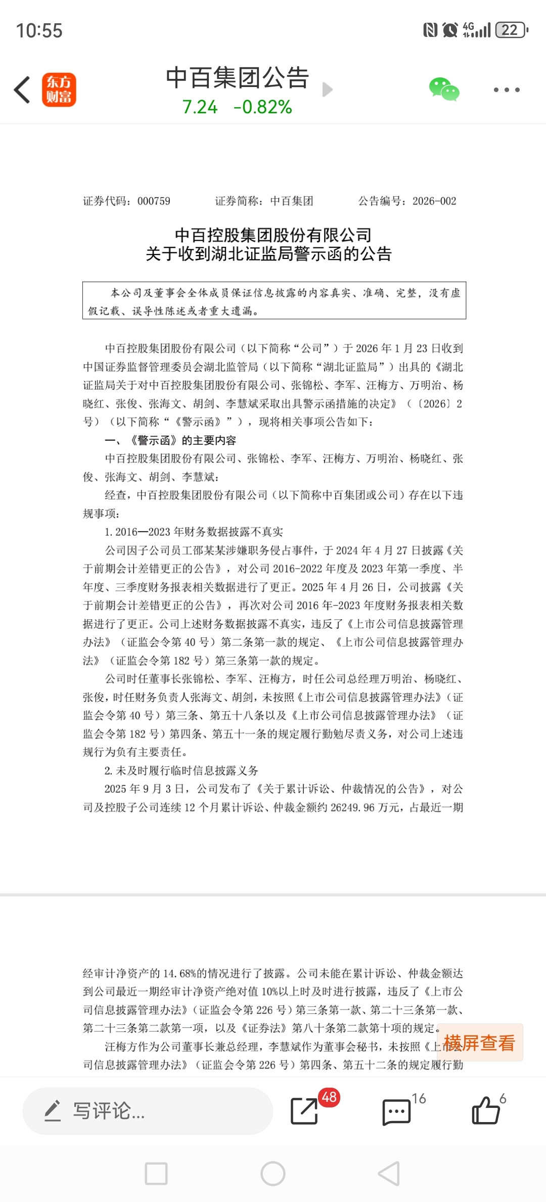 $中百集团(SZ000759)$ 这股废了