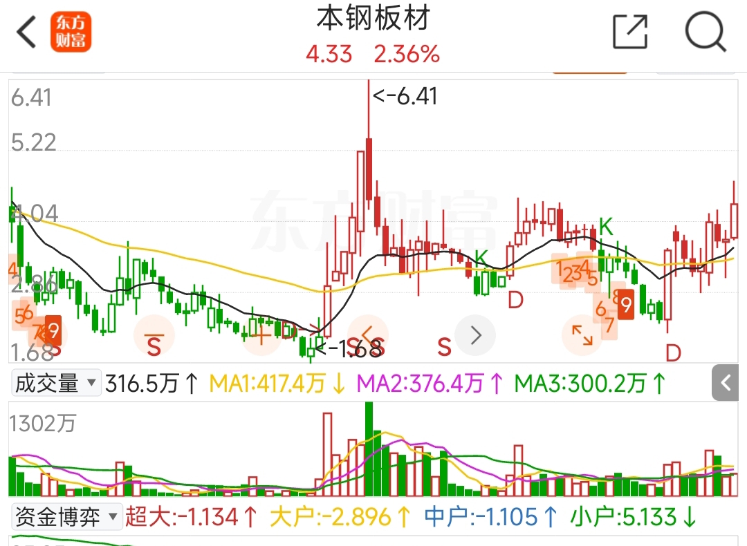$本钢板材(SZ000761)$ 4.38是强压力位