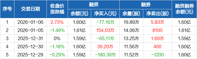本钢板材:融资净偿还77.16万元,融资余额1.6亿元(01-06)