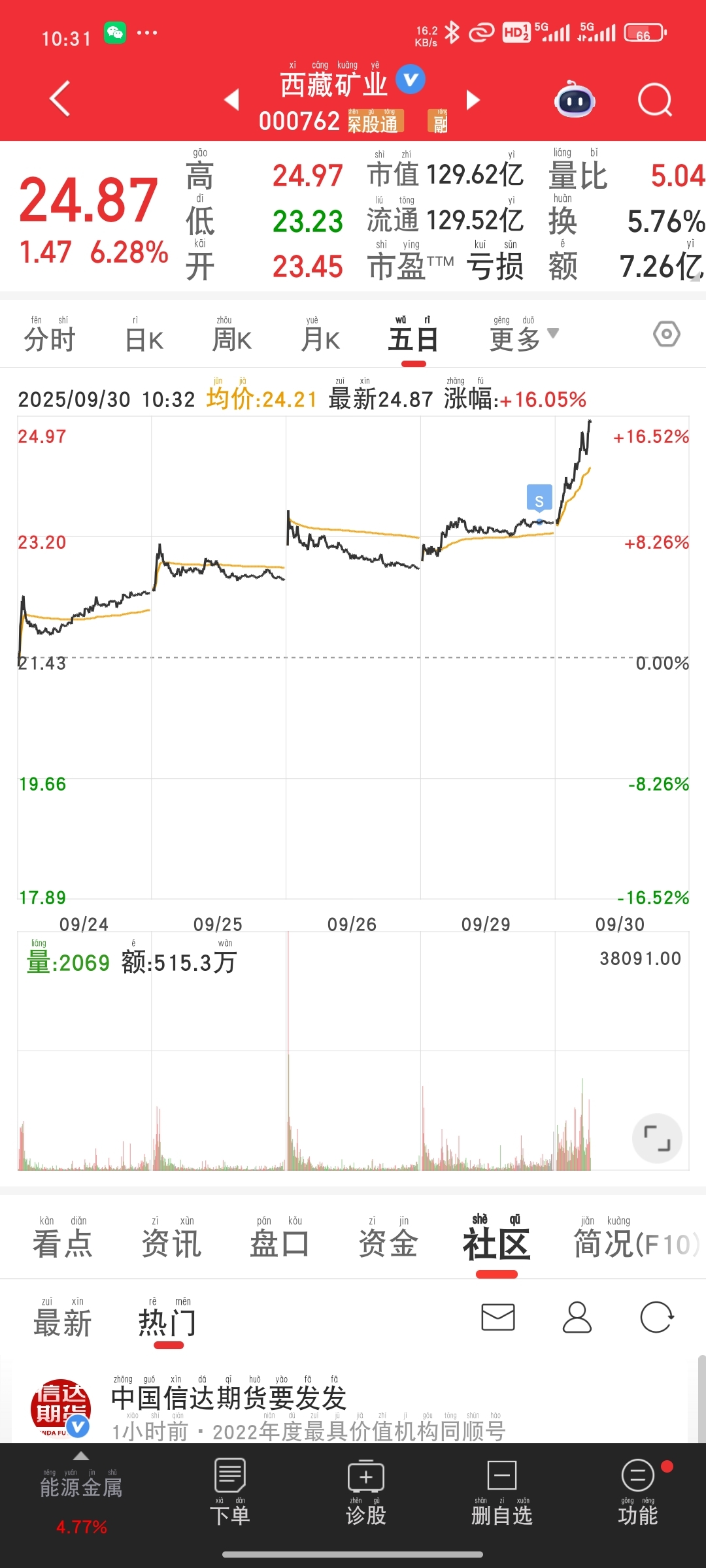 $西藏矿业(SZ000762)$ 飞了飞了