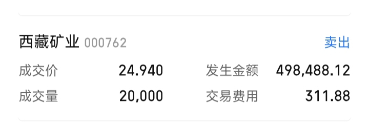 $西藏矿业(SZ000762)$ 我最后一天卖了你可以一字板了,祝坚守的发财