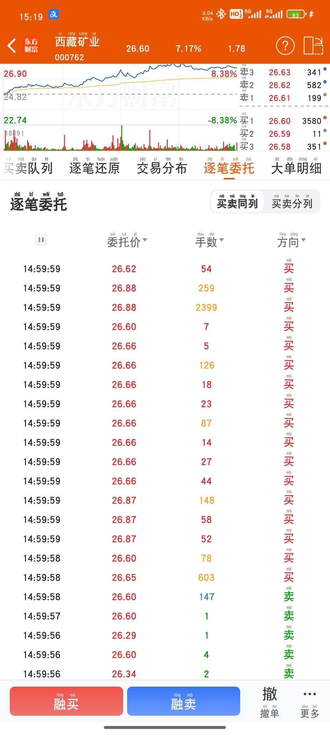 $西藏矿业(SZ000762)$ 集合竞价有千手哥抢筹码,羡慕明天大涨了,我清仓了