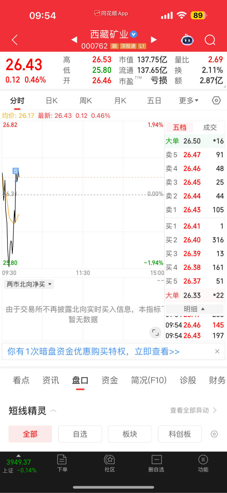 $西藏矿业(SZ000762)$ 听我的,再不买买不到了。