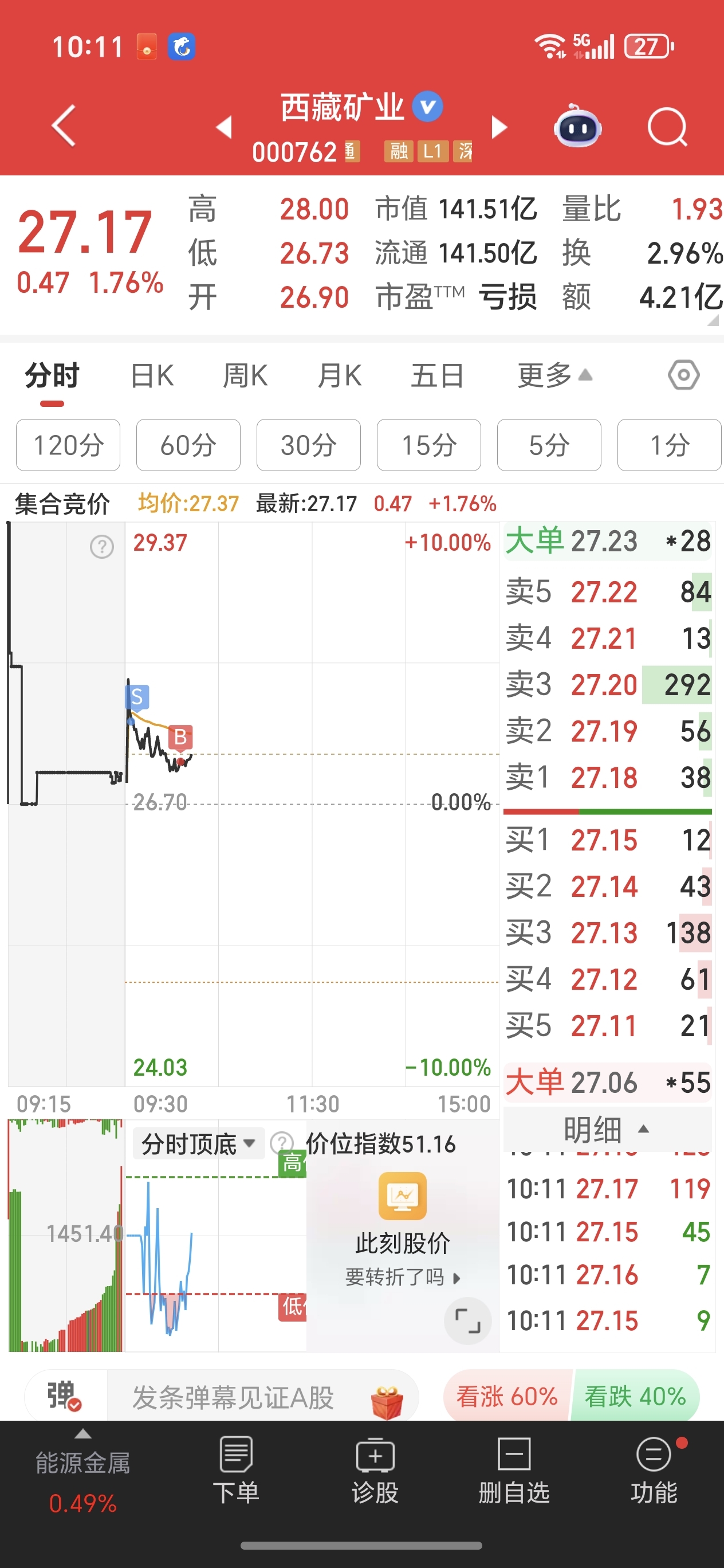$西藏矿业(SZ000762)$ 不动了,能拉一拉吗