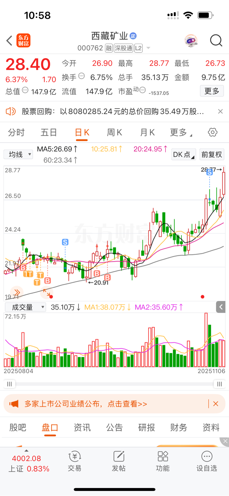 $西藏矿业(SZ000762)$ 心里拔凉拔凉的,卖了你去吃了套