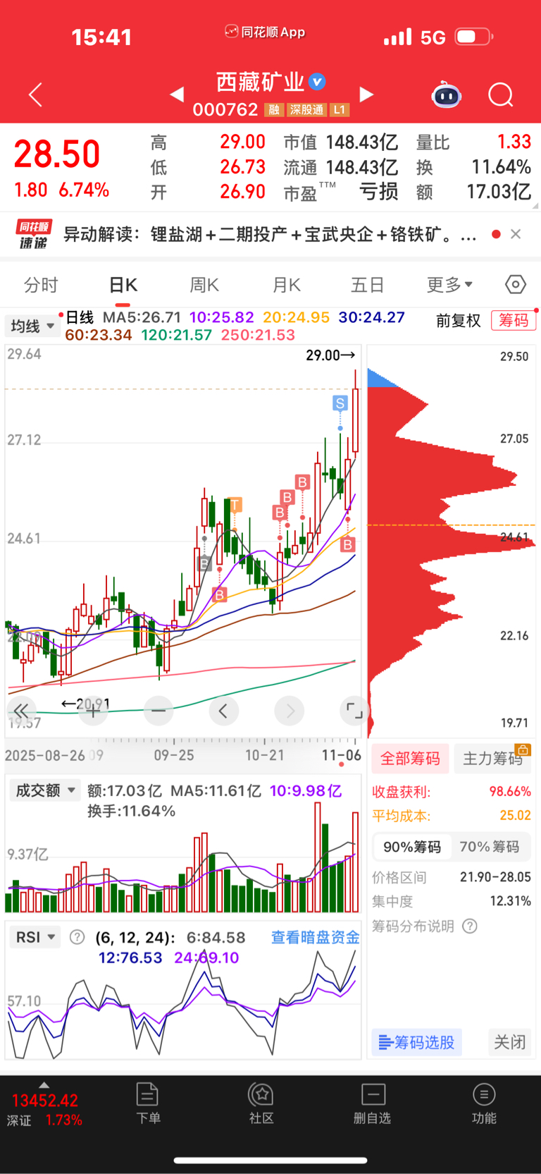 $西藏矿业(SZ000762)$ 铬矿量价齐升,最近的启动结构很像江波龙启动时的形态,目前只买不卖,前天和昨天做了个隔日T,后面几天准备好子弹,如果继续小阴线盘整就梭哈