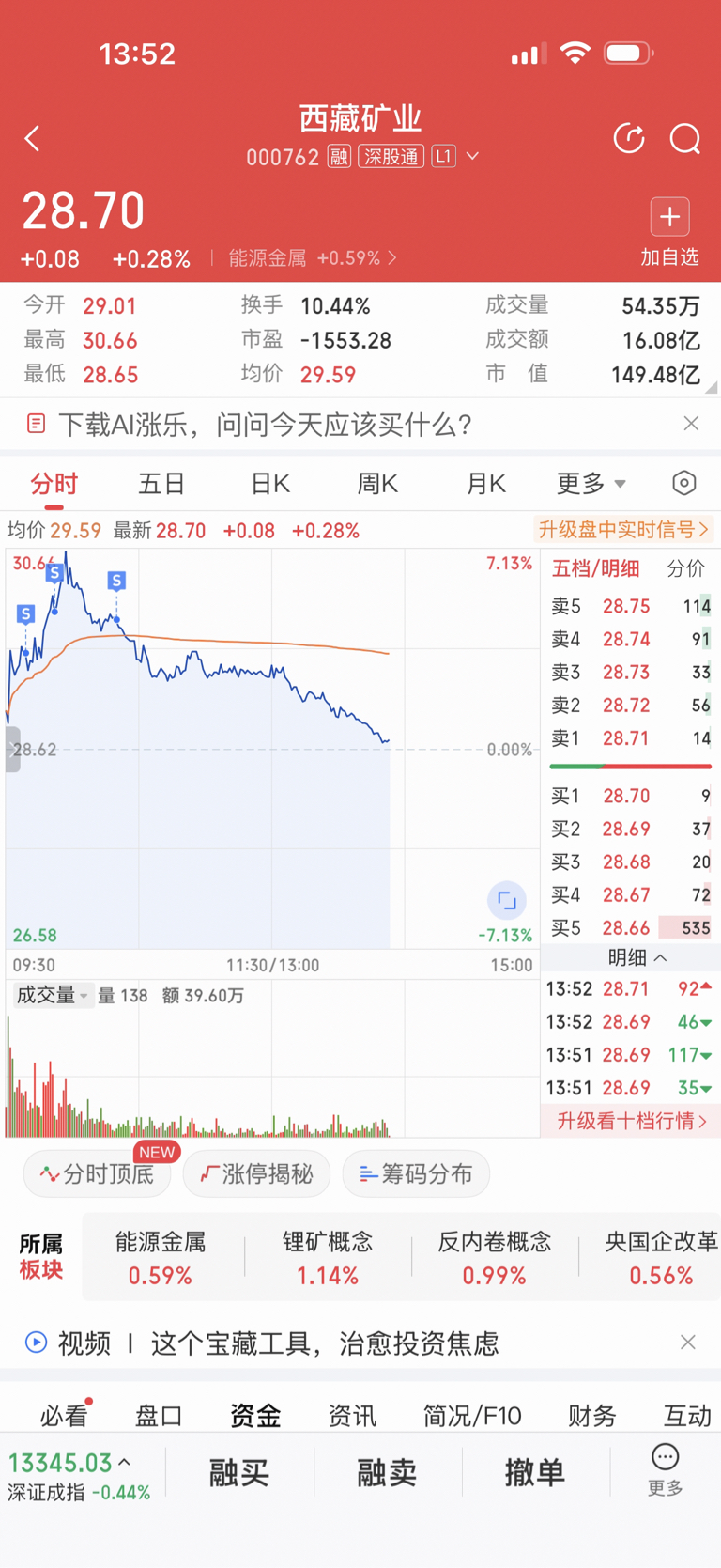 $西藏矿业(SZ000762)$ 哪个小可爱又接盘了