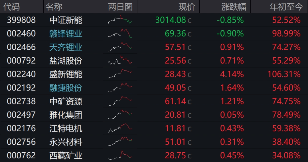 部分锂资源股今日及今年以来的股价表现如下:西藏矿业倒数第一,仅供大家参考。
