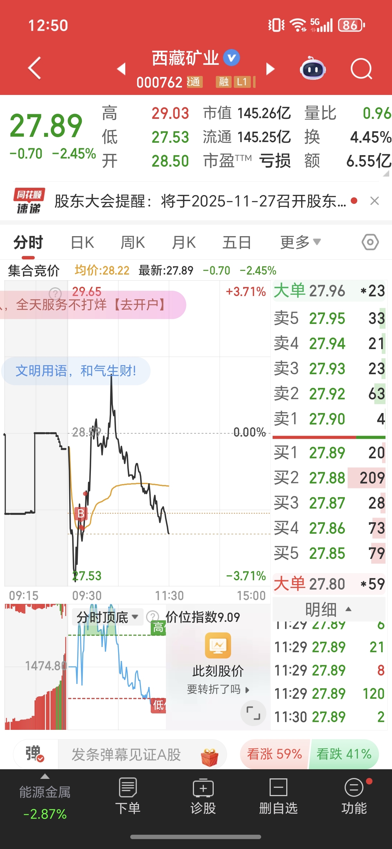 $西藏矿业(SZ000762)$ 买多了,头重脚轻,短期不会来套我吧