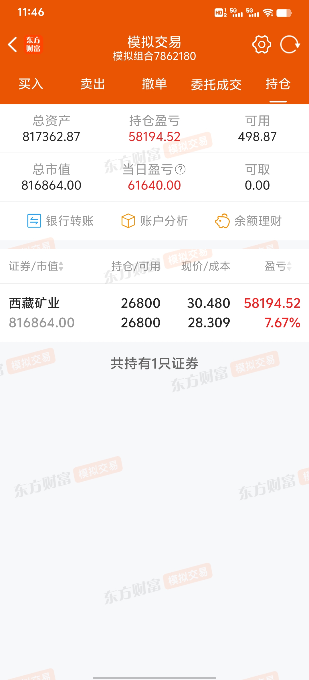 $西藏矿业(SZ000762)$ 模拟盈利55个,实盘不到一半