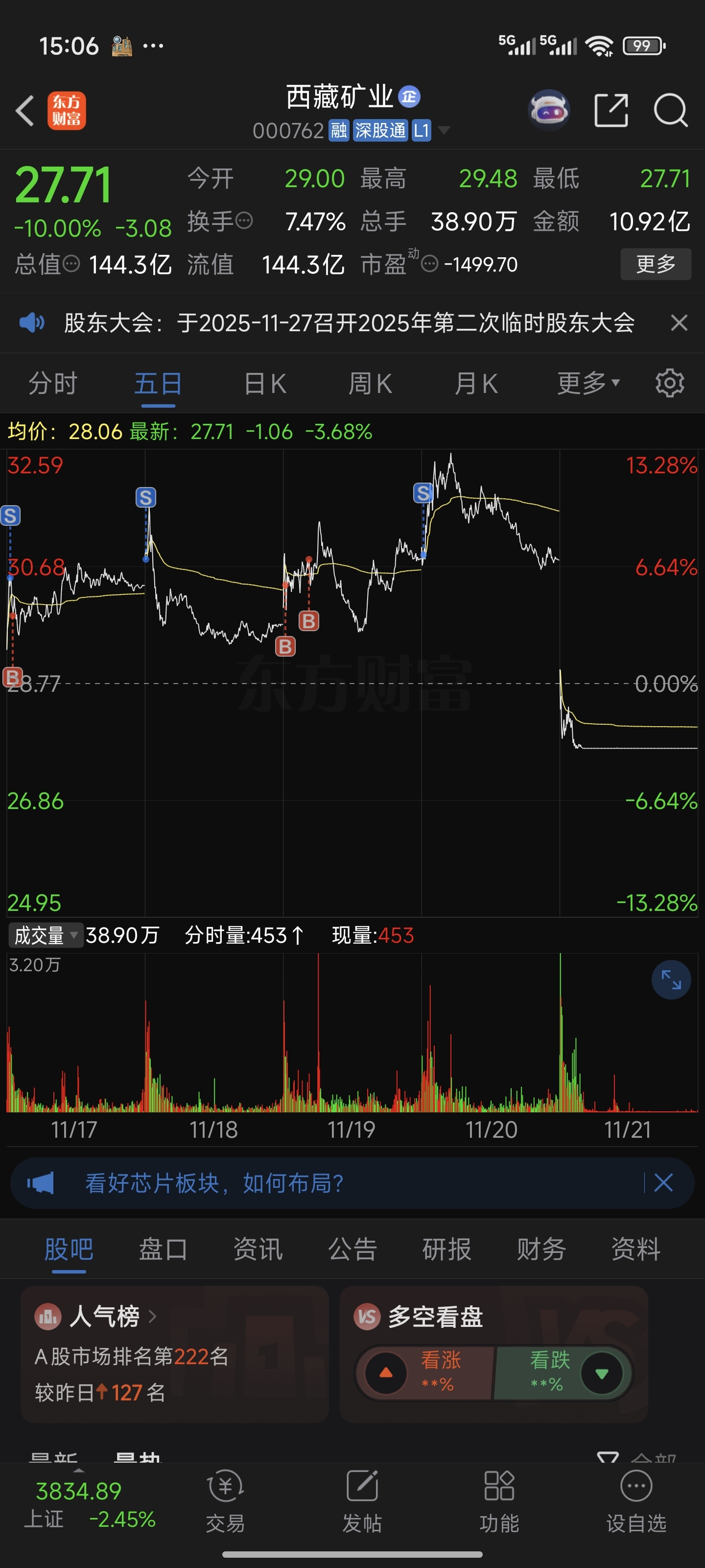 $西藏矿业(SZ000762)$ 太危险了,还好昨天没接回来