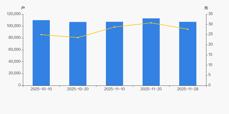 2025年10月10日至今,公司股东户数有所下降,区间跌幅为2.56%。2025年10月10日至2025年11月28日区间股价上涨10.68%。