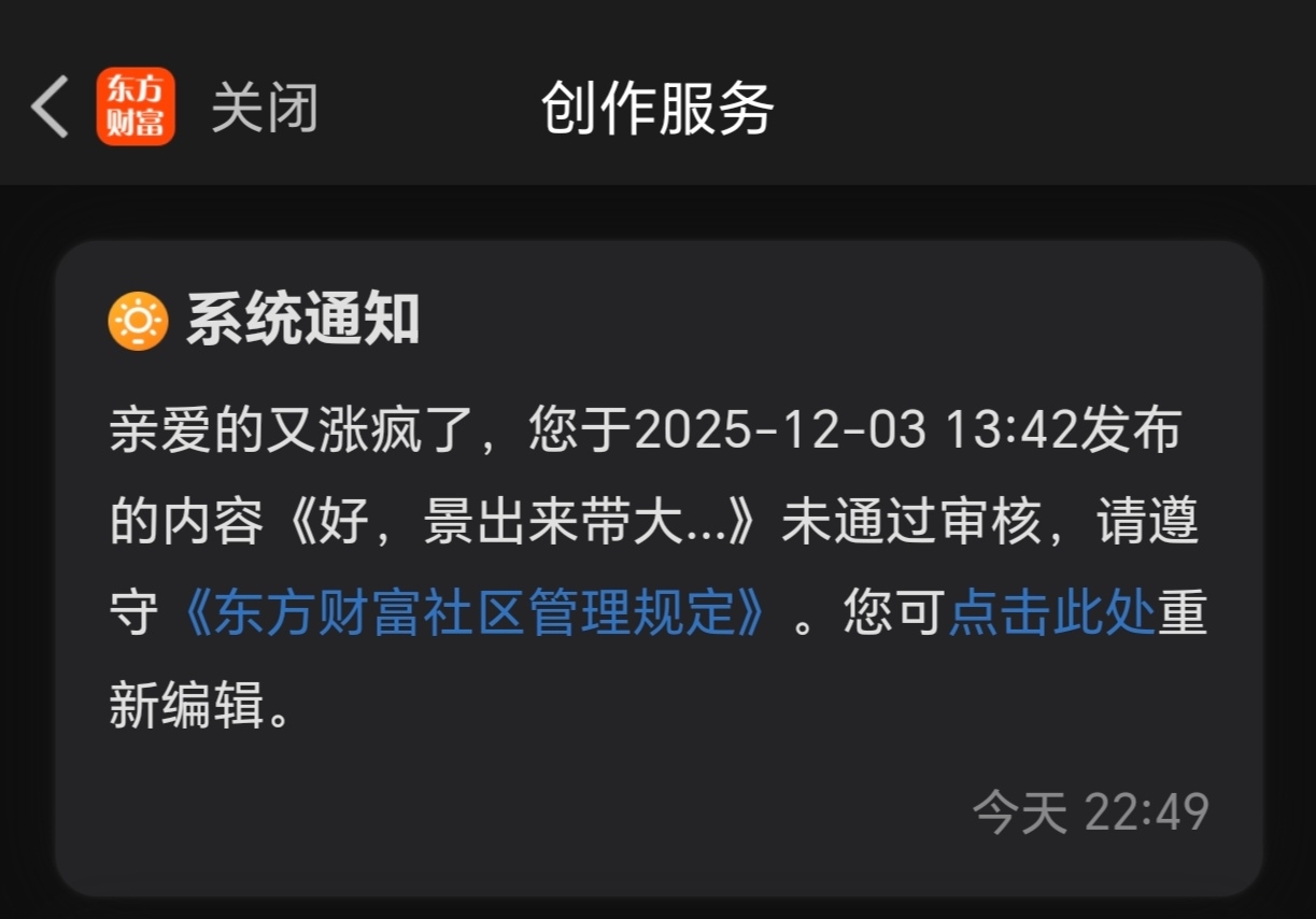 温馨提示: 1.根据《证券法》规定,禁止编造、传播虚假信息或者误导性信息,扰乱证券市场;2.用户在本社区发表的所有资料、言论等仅代表个人观点,与本网站立场无关,不对您构成任何投资建议。用户应基于自己的独立判断,自行决定证券投资并承担相应风险。《东方财富社区管理规定》
