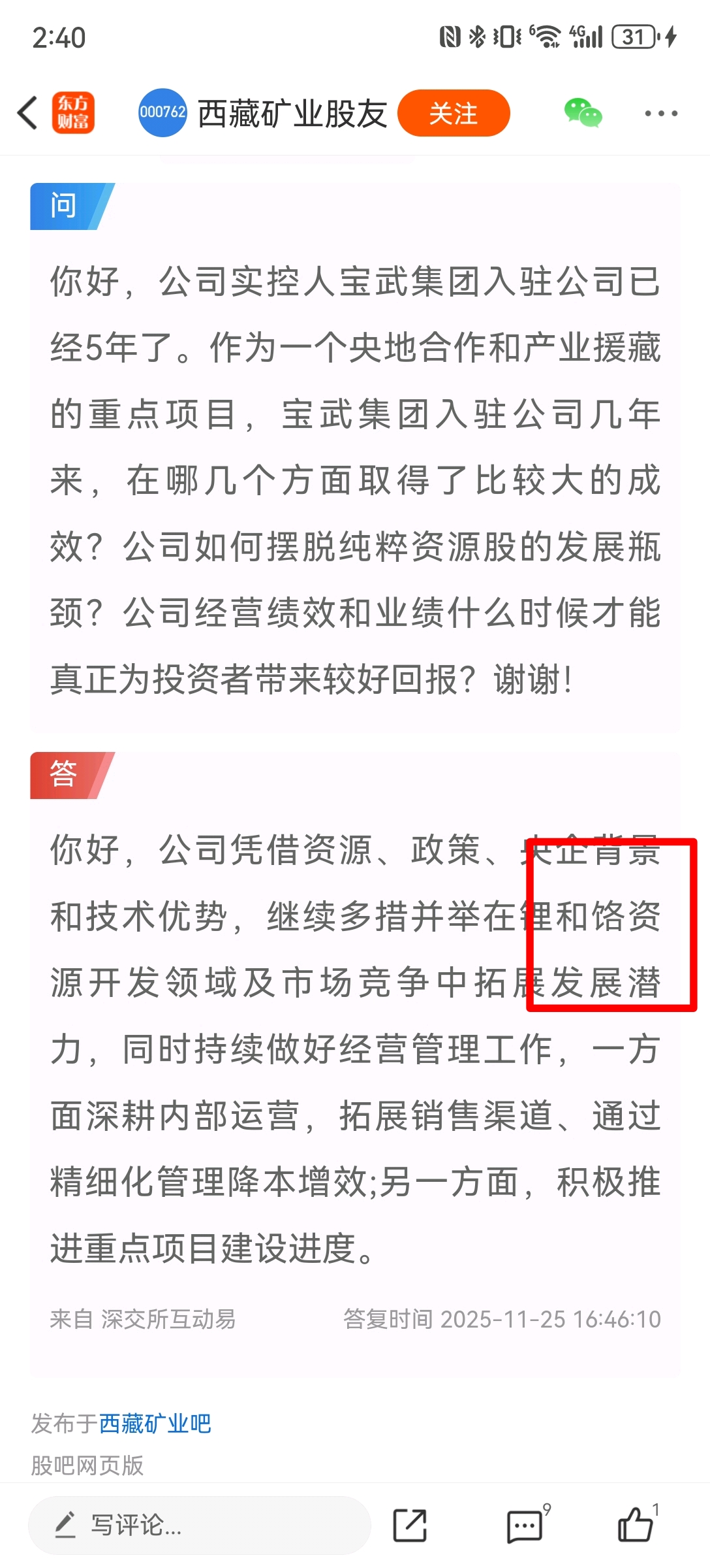 $西藏矿业(SZ000762)$ 我还要说一个就是,西藏矿业董秘水平真是不太行,中小投资者提问回答问题一点有用信息没有,回复投资者的回答还有错别字,这是非常严重的失误,从侧面有没有可能,内部管理也存在一定的问题呢。(以下图为证,铬字写成饹)