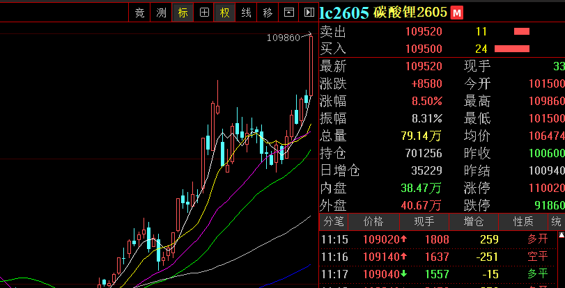 碳酸锂期货最近一直是期货市场热点,成交量巨大,今天上午一不留神快涨停了!