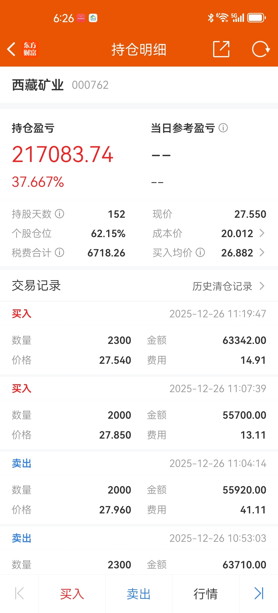 $西藏矿业(SZ000762)$ 我涨了就做涨 跌了我就做跌 随波逐流 每天做点T 搞点生活费