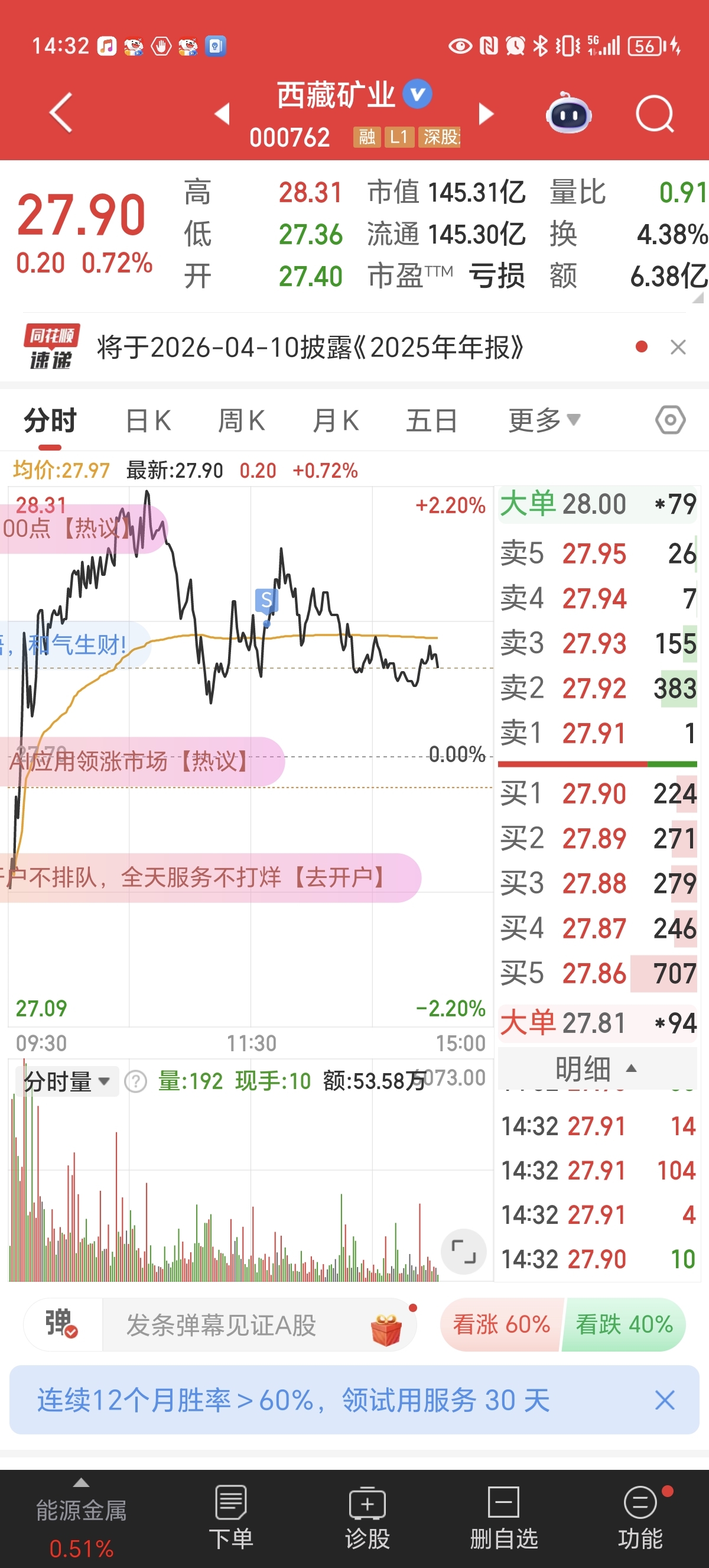 $西藏矿业(SZ000762)$ 走了走了,太磨叽了,去航天一天回本。