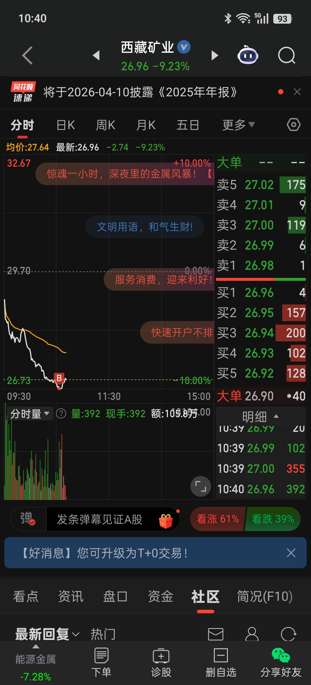 $西藏矿业(SZ000762)$ 跌停买了10手,还是胆子不够大