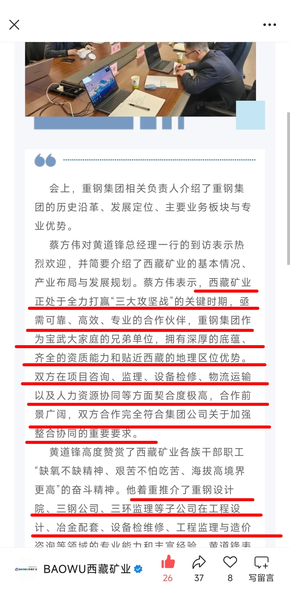 宝武集团调动重钢集团“随叫随到”支援。年关将至,还在这种时候入藏支援。决心很大呀