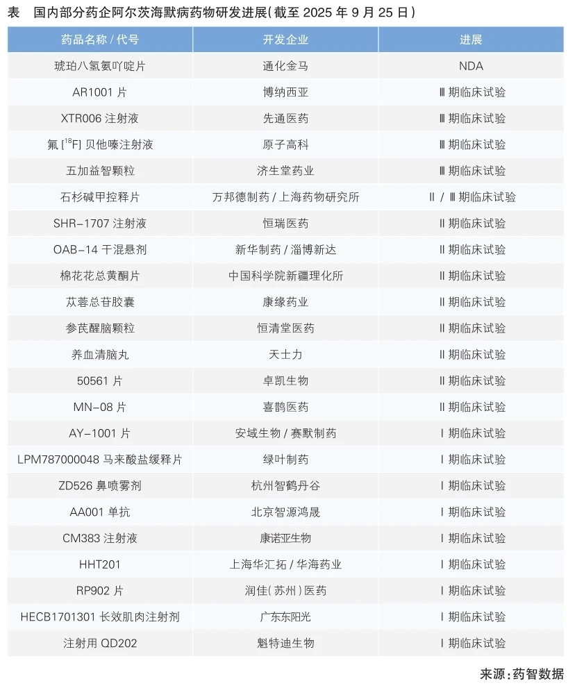 国内企业近年来也在AD治疗领域加速发力,多个项目推进至关键阶段:通化金马的琥珀八