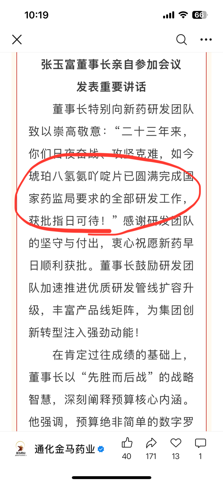 $通化金马(SZ000766)$ #股市怎么看# 吖定片“指日可待”,好饭不怕晚